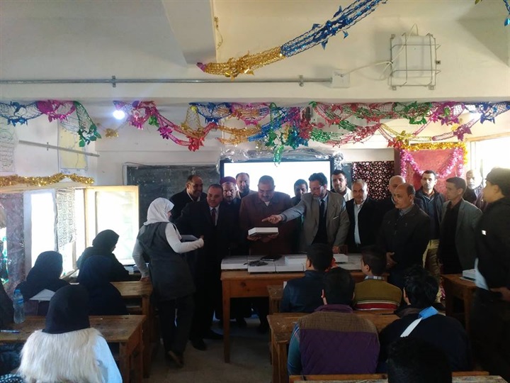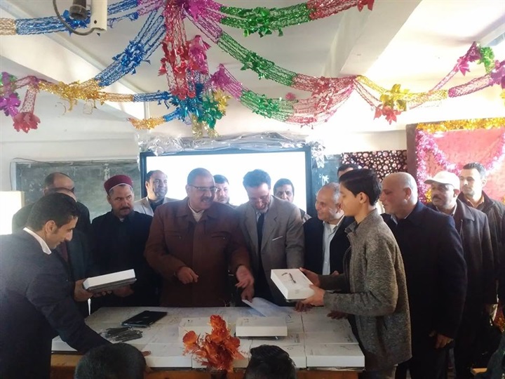 بالصور.. "النيلي" يسلم أجهزة التابلت لطلاب "براني" الثانوية بمطروح