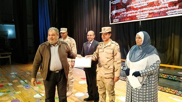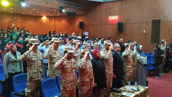 وعقب الوقوف دقيقة حداد على ارواح شهداء الوطن بدأت فقرات الندوة حيث قدم كورال المدرسة المستضيفة اوبريت وطنى ثم سرد النقيب محمد ابو الفضل قصص بطولاته على الطلاب والحضور ثم القت الشاعرة سماح الجوهرى قصيدة وطنية بعنوان "هو ده ابنها " ثم قام #باهى بتكريم القائمين على الندوة والطلاب المتميزين فى التربية العسكرية ومديرى مدارسهم بتقديم شهادات التقدير والميداليات لهم.