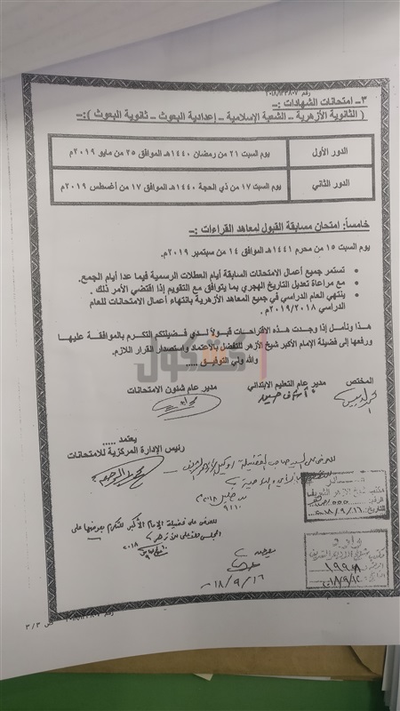 "الأزهر" يعلن موعد امتحانات الشهادة الثانوية