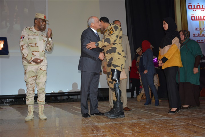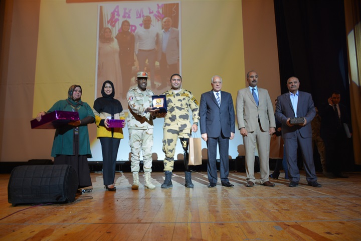 من المصابين وأسر الشهداء من رجال القوات المسلحة والشرطة، وعدد من الطلبة والطالبات