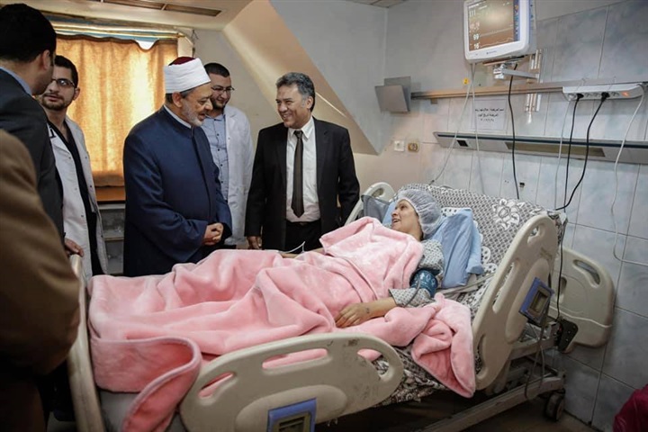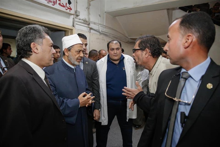 شيخ الأزهر يزور مصابي تفجير الدرب الأحمر الإرهابي بمستشفى الحسين الجامعي