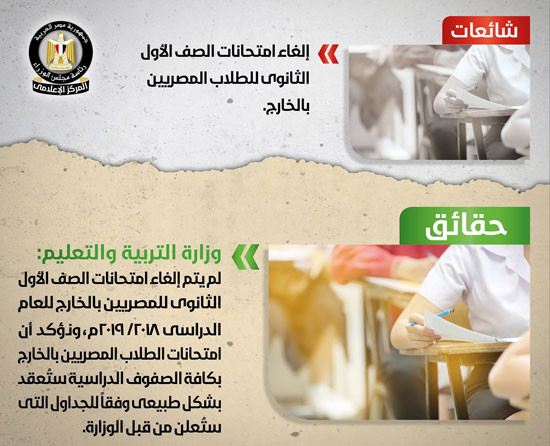 بشأن إلغاء وزارة التربية والتعليم لامتحان الصف الأول الثانوي للمصريين بالخارج لهذا