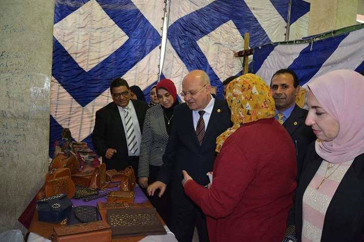 وقد تفقد رئيس الجامعة ومرافقوه أجنحة المعرض التي ضمت عرض بعض المنتجات من المواد الغذائية من منتجات الألبان والدواجن التي تقدمها كليتي الزراعة والطب البيطري وجناح كلية التربية النوعية الذي ضم بعض اللوحات الفنية والمشغولات اليدوية والملابس، وكما تفقد بعض أجنحة المعرض من الخارج وشملت أدوات منزلية وملابس وأحذية ومنتجات جلدية وأجهزة معمرة .