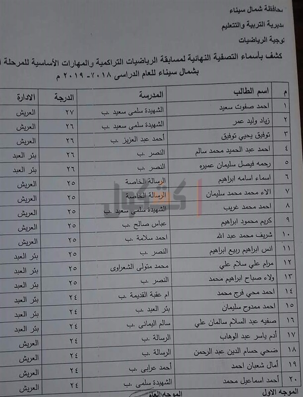 بالصور.. اعتماد نتيجة مسابقة الرياضيات التراكمية بشمال سيناء