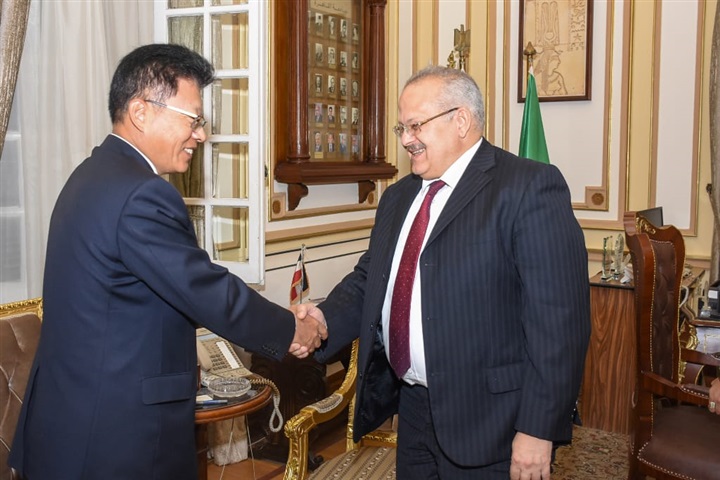 التجاري لدولة الصين والوفد المرافق، بمكتبه بالجامعة، وتم خلال اللقاء بحث سبل التعاون