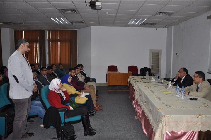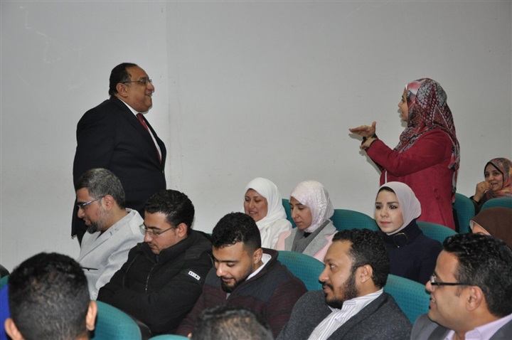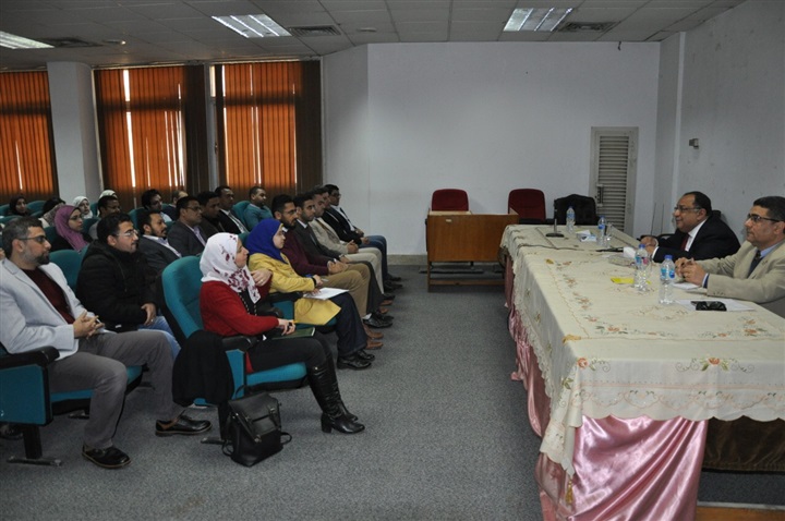 رئيس جامعة حلوان يجتمع مع المعيدين والمدرسين المساعدين بكلية التجارة