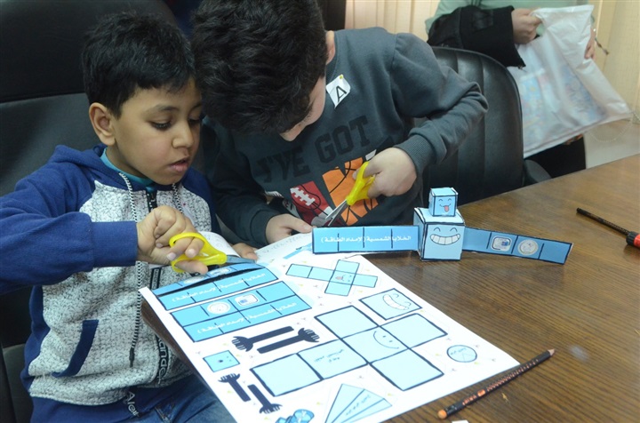 وتفاعل الأطفال من خلال المشاركة بمجموعة من الألعاب المصنعة من خامات مختلفة التي تتضمن آلية الفك والتركيب اليدوي والذى يضمن وصول المعلومة الصحيحة للطفل، وأيضاً التعريف بمكونات القمر الصناعي وكيفية تشغيله من خلال نموذج مبسط للأقمار الصناعية للأطفال.