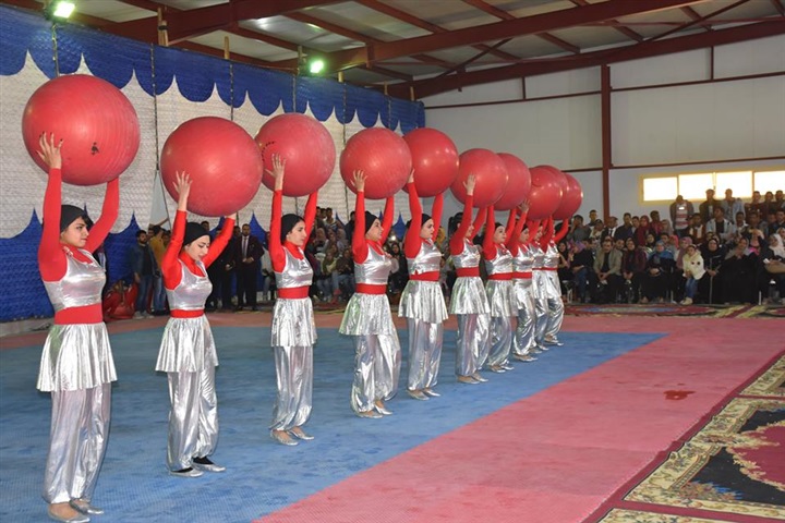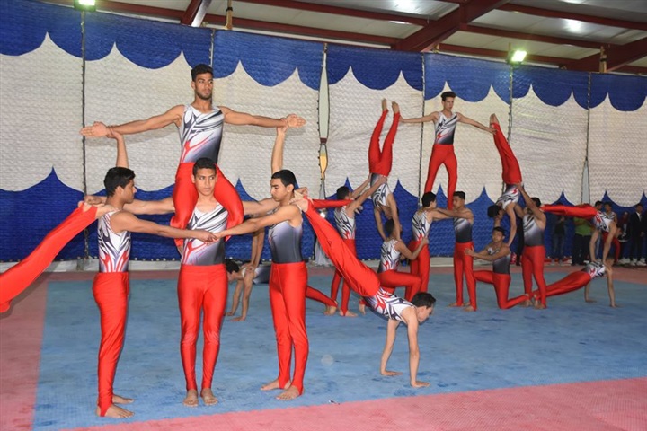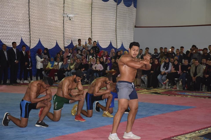 كما تم تنظيم عدة عروض استعراضية من الطلبة والطالبات داخل الصالة المغطاه بكلية التربية الرياضة ونالت استحسان السادة الضيوف والحاضرين.
