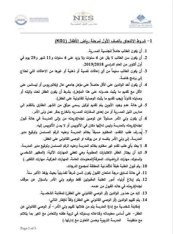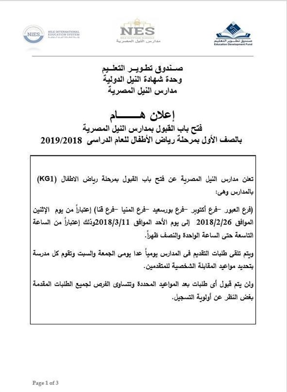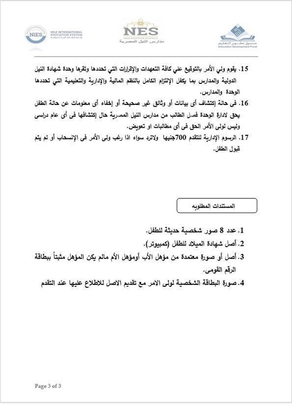 تعرف علي المستندات المطلوبة والشروط للقبول بمدارس النيل الدولية