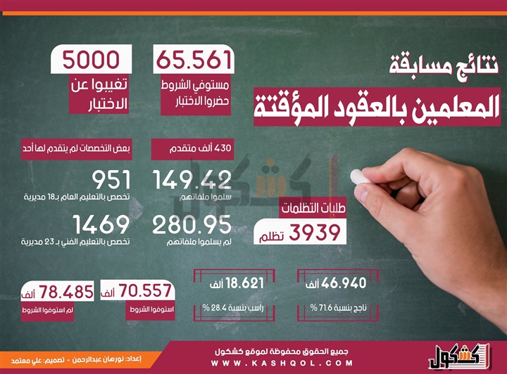 انفوجراف.. نتائج مسابقة المعلمين بالعقود المؤقتة