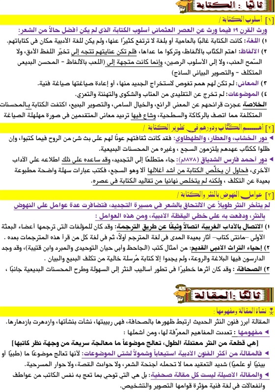 ويقدم لكم "كشكول" مراجعات لطلبة وطالبات الصف الثالث الثانوي الأزهري، في جميع المواد، بدءًا بمادة الأدب لطلاب القسم العلمي