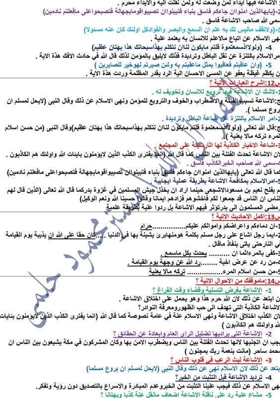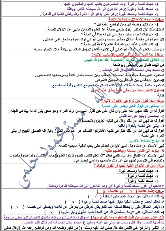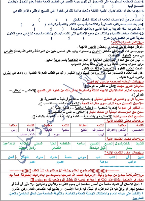 ويقدم لكم "كشكول" مراجعات لطلبة وطالبات الصف الثالث الثانوي الأزهري، في جميع المواد، واليوم مع مادة المطالعة لطلاب القسم الأدبى.