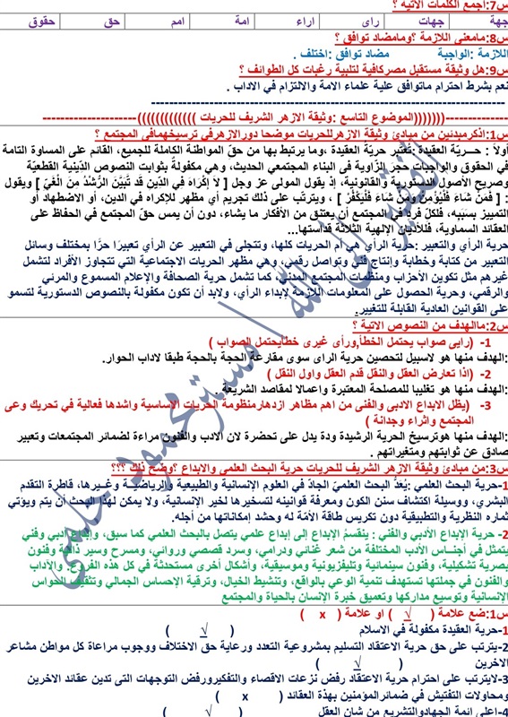 "س و ج".. مراجعة شاملة لـ"مطالعة" الثالث الثانوى الأزهري