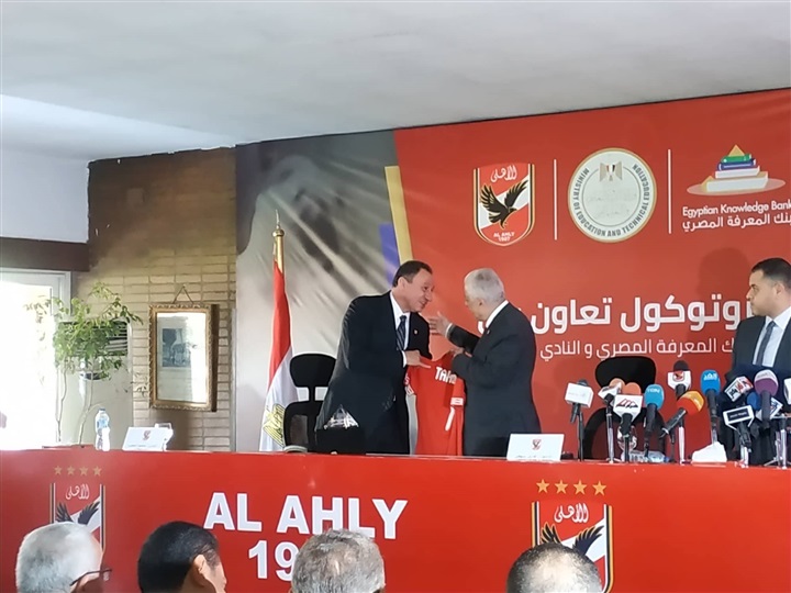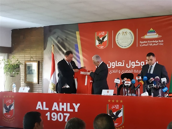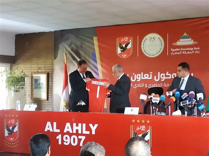 وقع الدكتور طارق شوقي وزير التربية والتعليم والتعليم الفني، والكابتن محمود الخطيب رئيس مجلس إدارة النادي الأهلي اليوم بروتوكول تعاون مشترك بين بنك المعرفة المصري والنادي الأهلي، وذلك تحت شعار "من أجل مجتمع مصري يتعلم ويفكر ويبتكر"، والذي يهدف إلى دعم الرياضيين من مختلف الأعمار، وتعريفهم بالمحتوى المعرفي والثقافي والعلمي، وتدريب الأعضاء والقطاع الرياضي في النادي الأهلى على كيفية الاستفادة من المصادر القيمة بالبنك. حضر توقيع البروتوكول عدد من قيادات وزارة التربية والتعليم والتعليم الفنى، وأعضاء مجلس إدارة النادى الأهلى، ومسئولى بنك المعرفة المصرى.