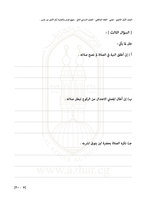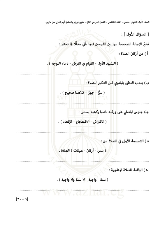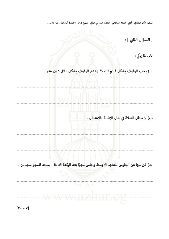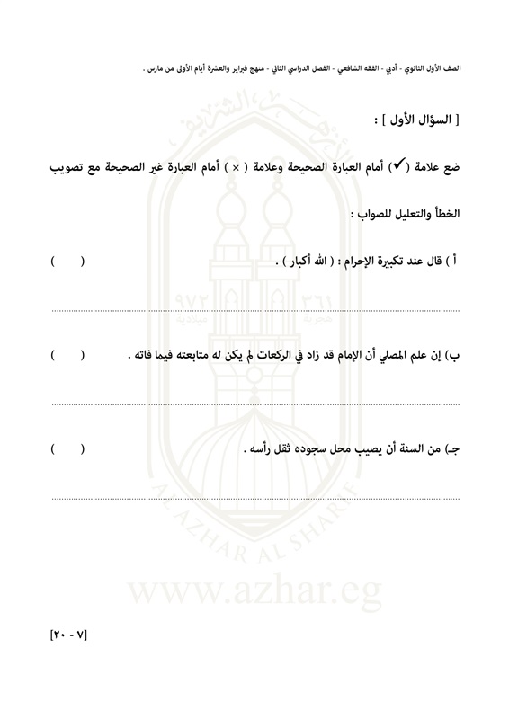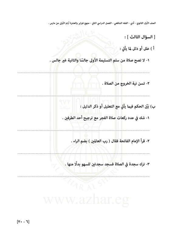 شاهد.. شكل امتحان الفقه "الشافعى" لطلاب الأول الثانوى الأزهرى