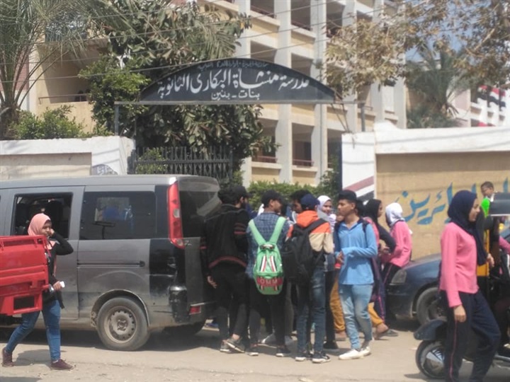 وبدأت طالبات الصف الأول الثانوى، بمدرسة منشأة البكاري بالهرم، أداء متحان اللغة العربية لأول مرة في تجربة التابلت والثانوية التراكمية في التاسعة صباحًا.