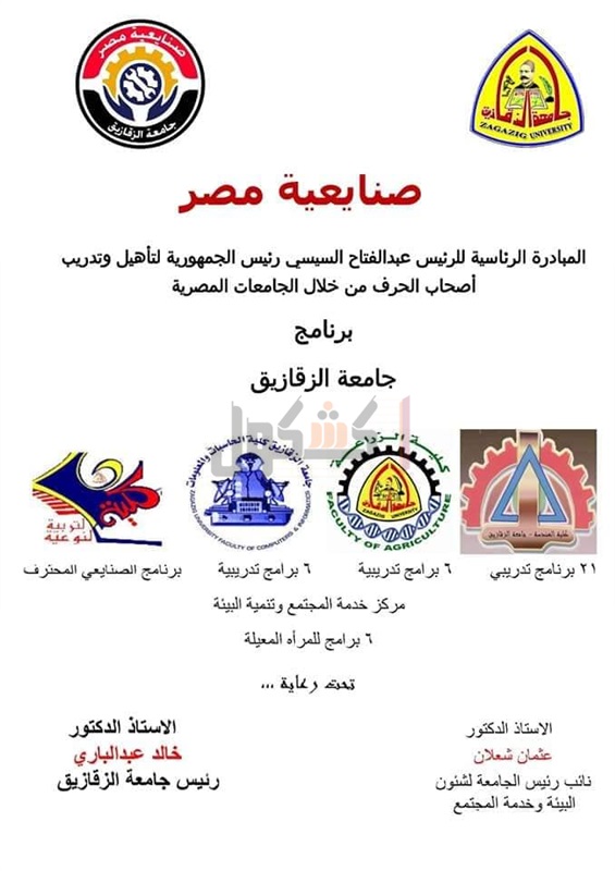 بالأسماء.. 40 برنامج بمبادرة "صنايعية مصر" بجامعة الزقايق