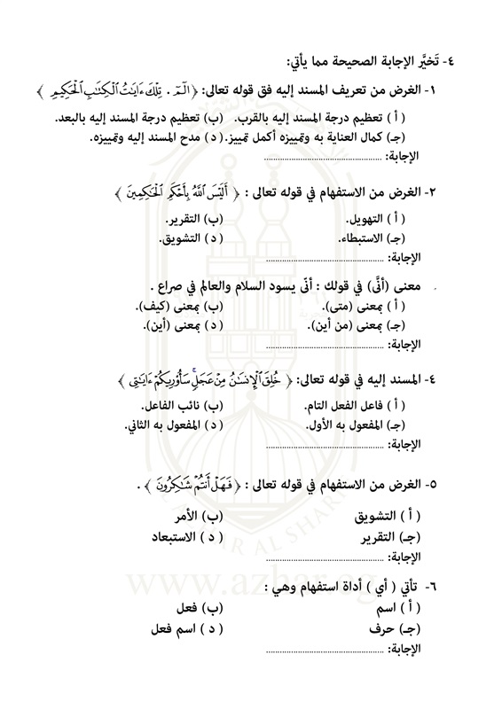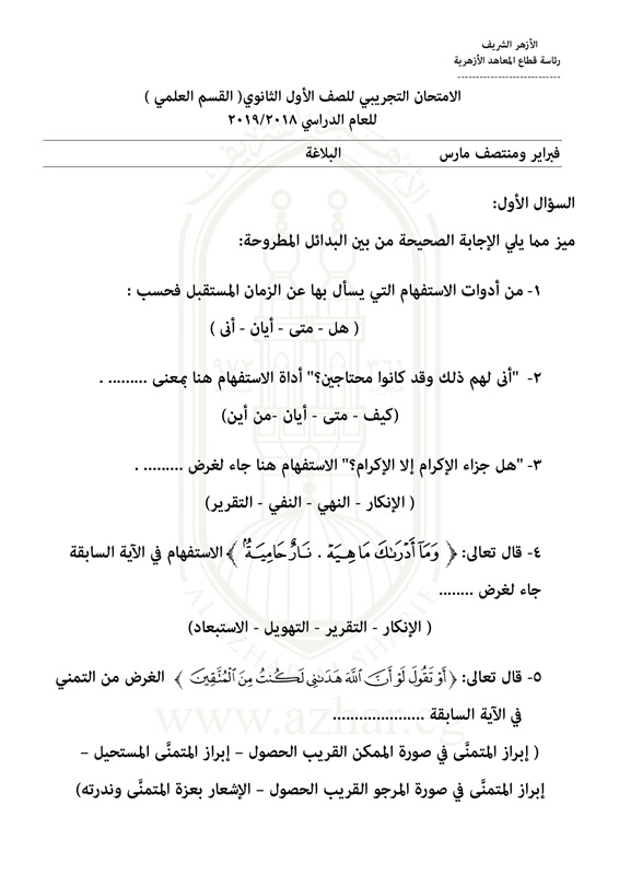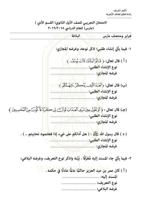 بالصور.. تعرف على شكل امتحان البلاغة لطلاب الأول الثانوى الأزهرى
