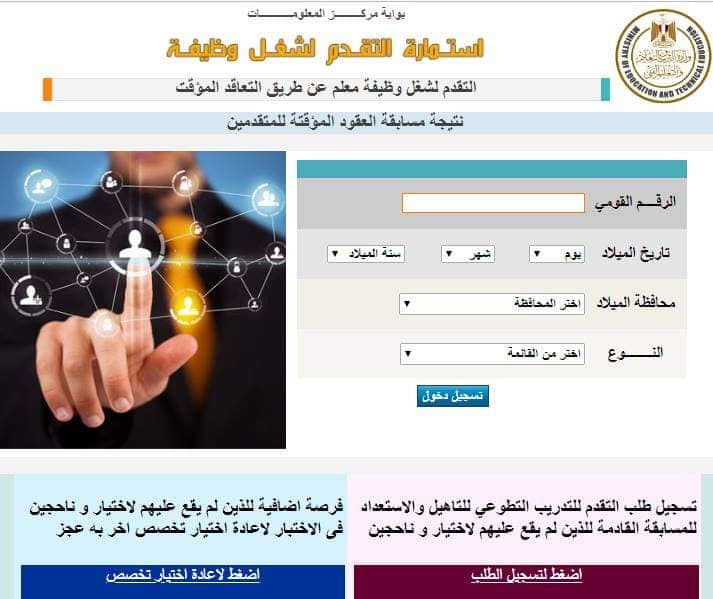 أتاحت وزارة التربية والتعليم والتعليم الفني تطبيقين للمتقدمين في مسابقة العقود المؤقتة للمعلمين الذي لم يقع الاختيار عليهم.
