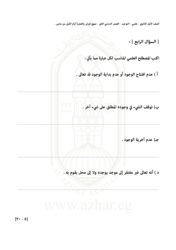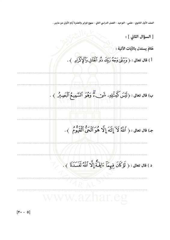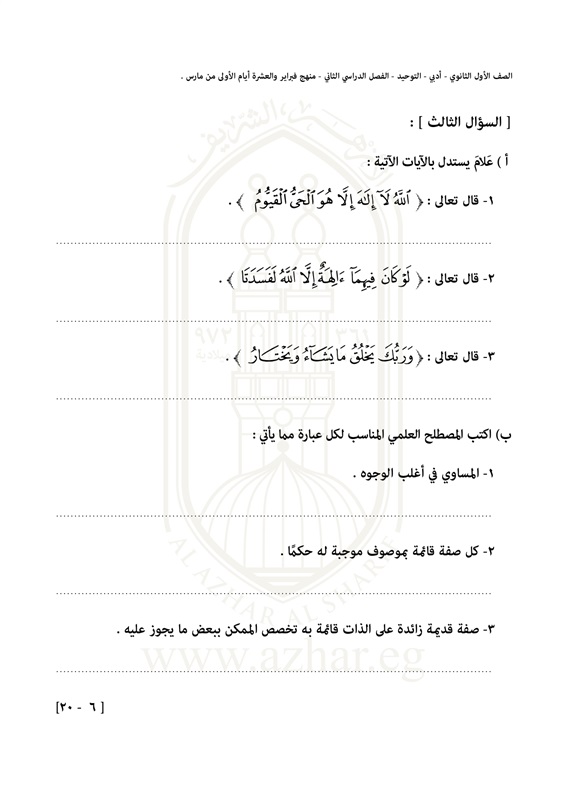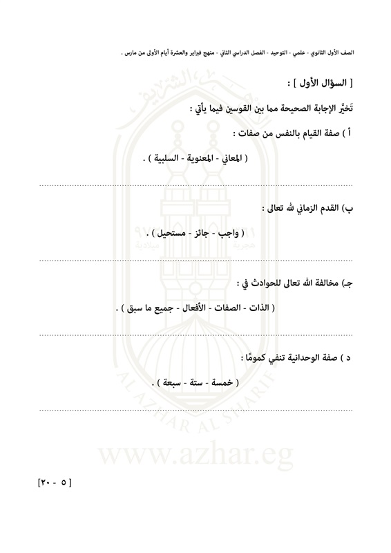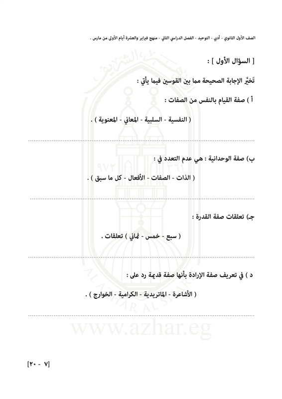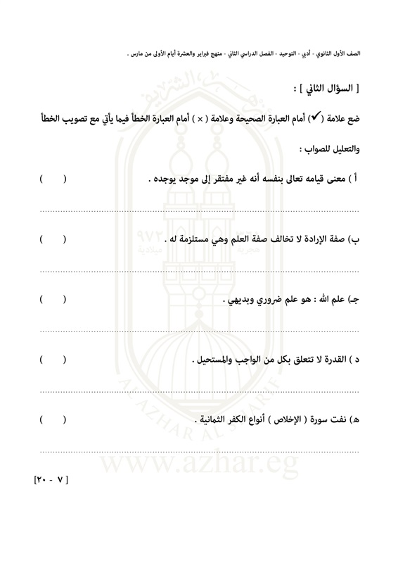 بالصور.. تعرف على شكل امتحان التوحيد لطلاب الأول الثانوى الأزهرى