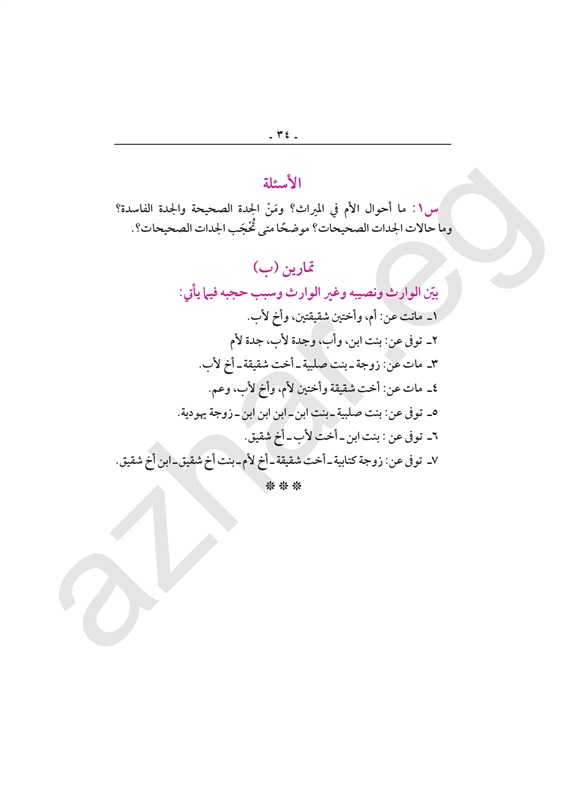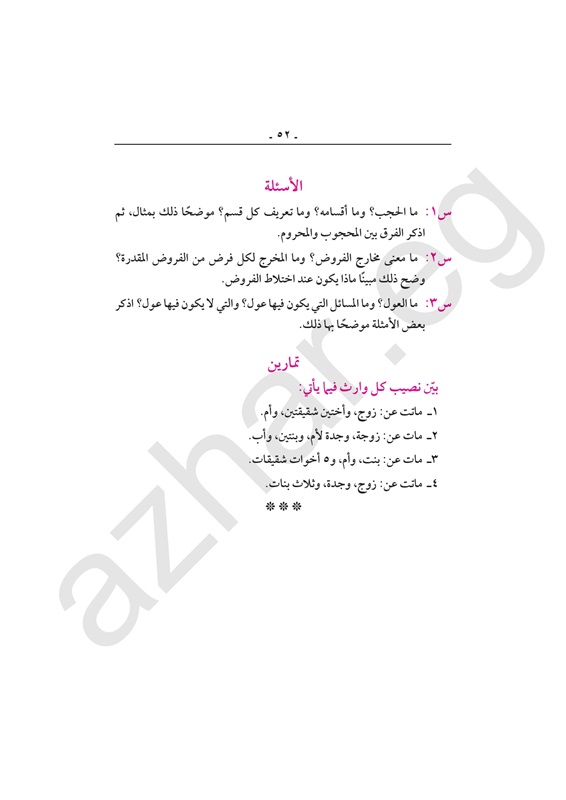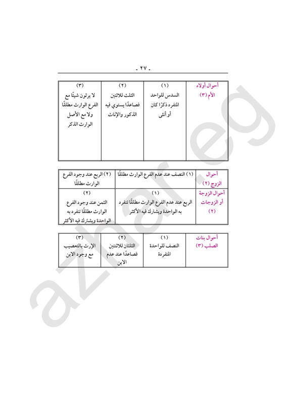 مراجعة شاملة لـ"مواريث" الثالث الثانوي الأزهري