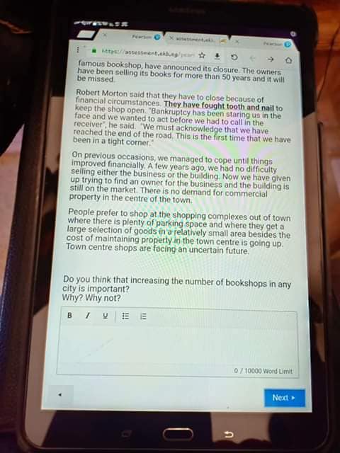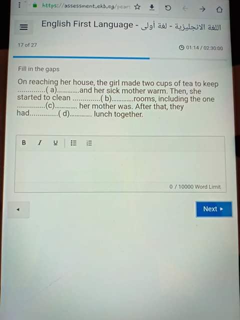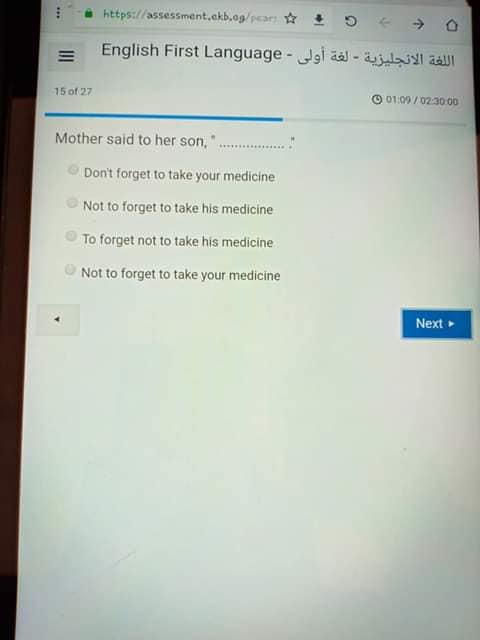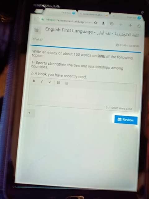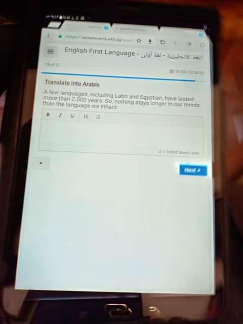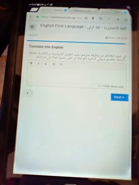 نشر أحد طلاب الصف الأول الثانوي، امتحان الامتحان التجريبي في اللغة الأجنبية الأولي، الذي يؤديه اليوم، الطلاب عبر المنصة الإلكترونية من خلال التابلت، منذ التاسعة صباحاً، ويستمر الامتحان حتى التاسعة مساءاً.