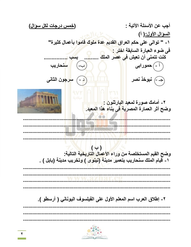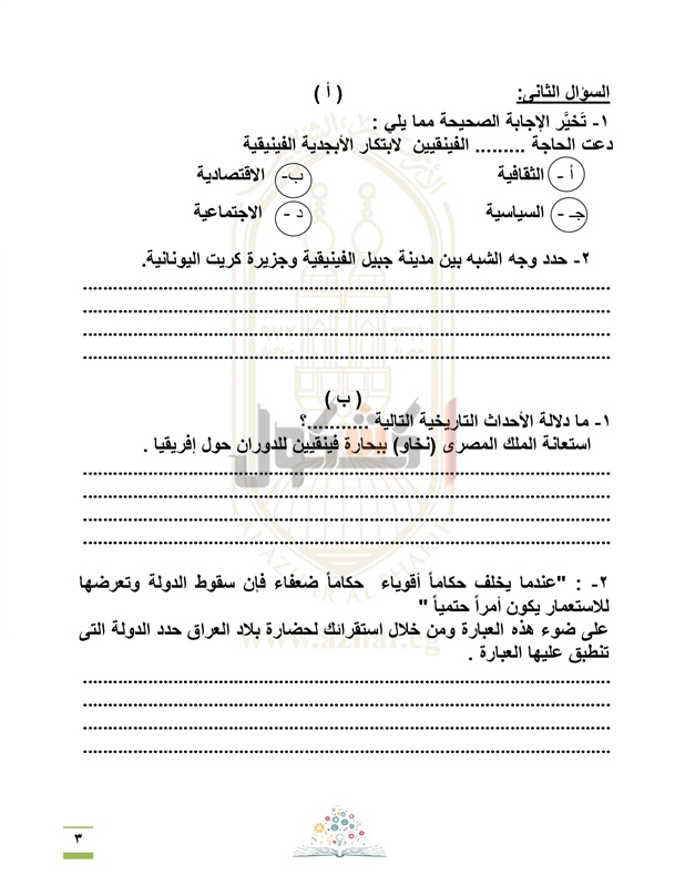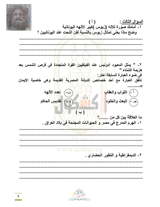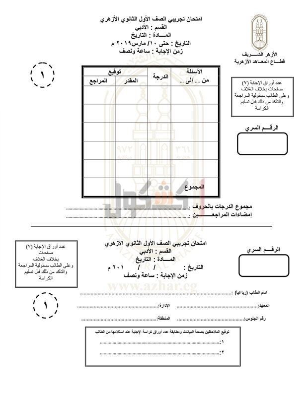 بالصور.. تعرف على شكل امتحان التاريخ لطلاب الأول الثانوى الأزهرى