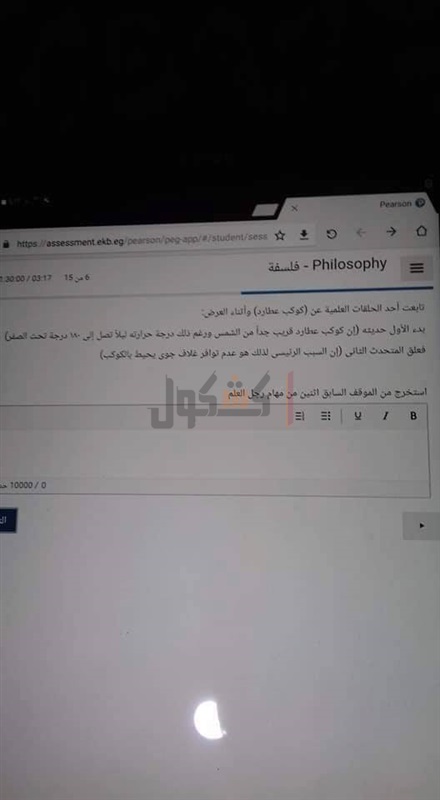 الفلسفة والمنطق، الذين يؤدونه اليوم، من الامتحانات التجريبية الإلكترونية بنظام التابلت،