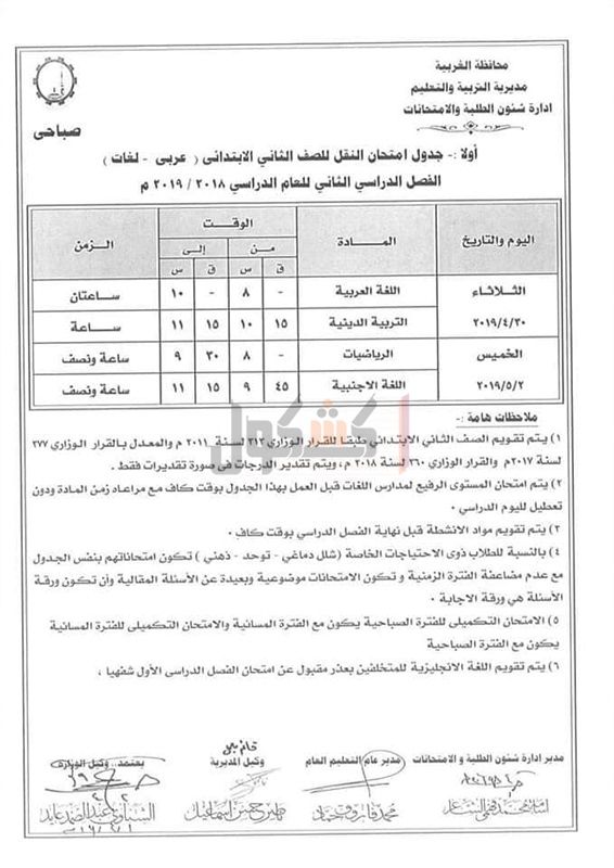 أعلنت مديرية التربية والتعليم، والتعليم الفني بالغربية جدول امتحانات النصف الثاني من العام الدراسي 2018/2019 لسنوات النقل.
