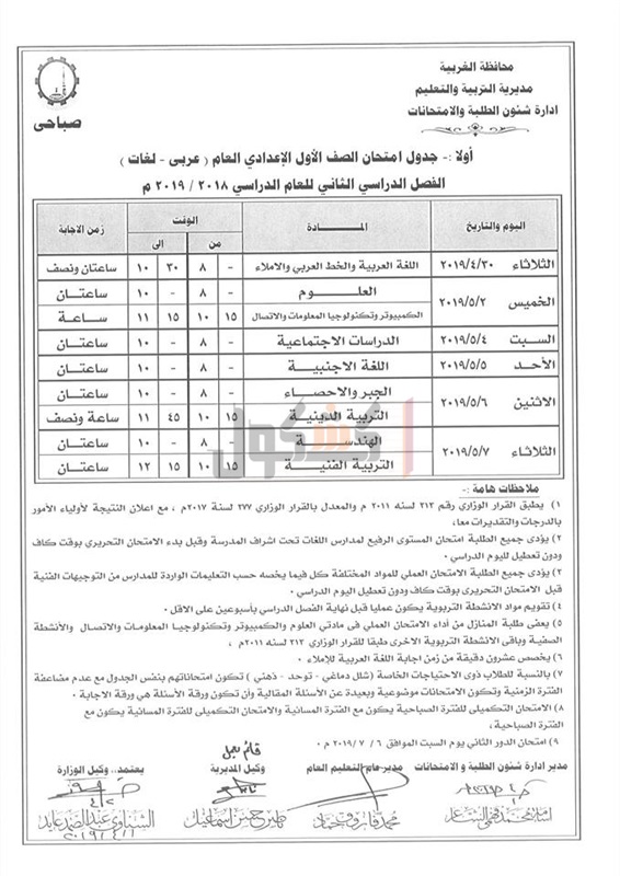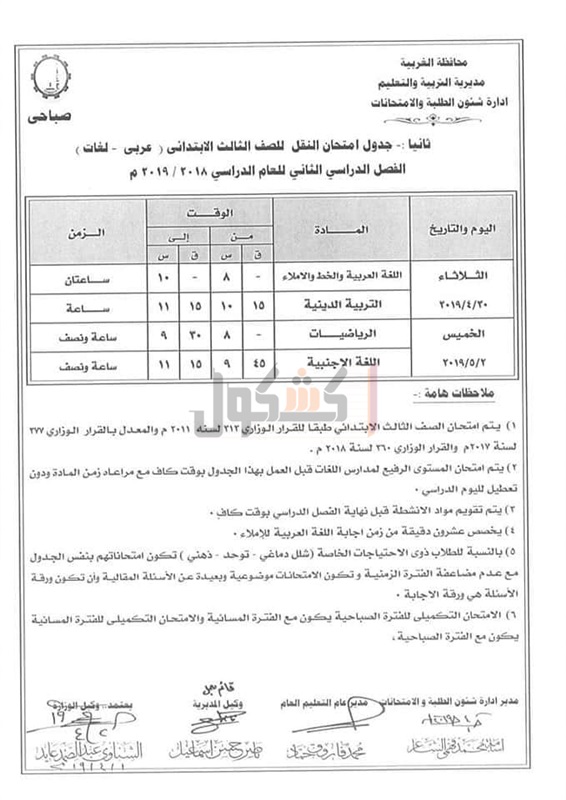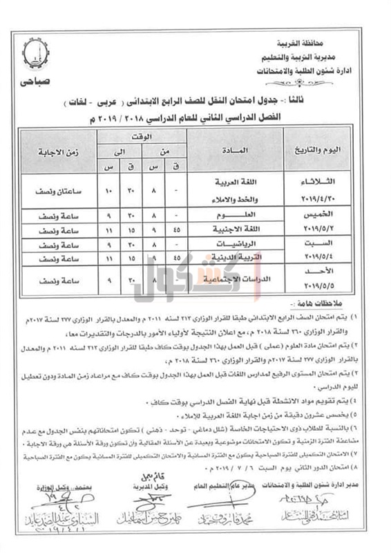 ننشر جدول امتحانات طلاب النقل بالغربية