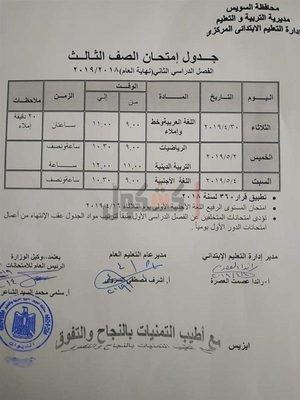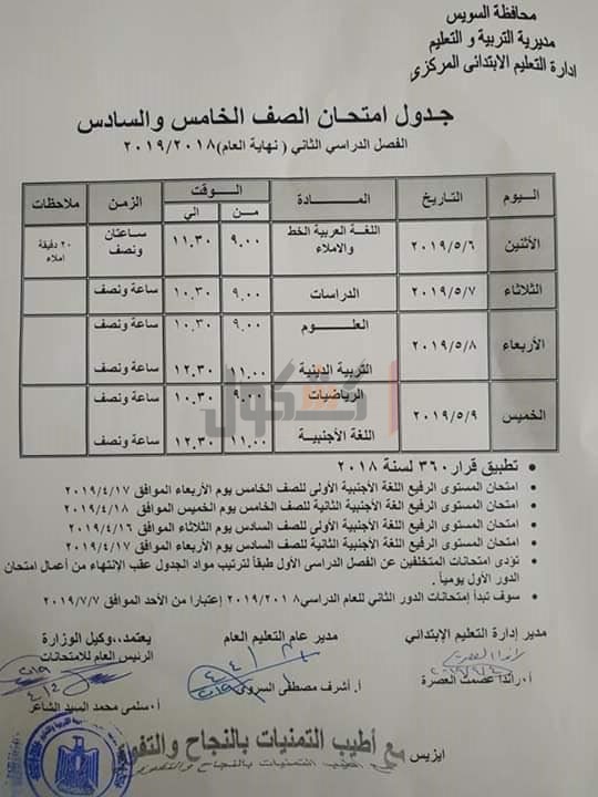 ننشر جداول امتحانات المرحلة الابتدائية بالسويس