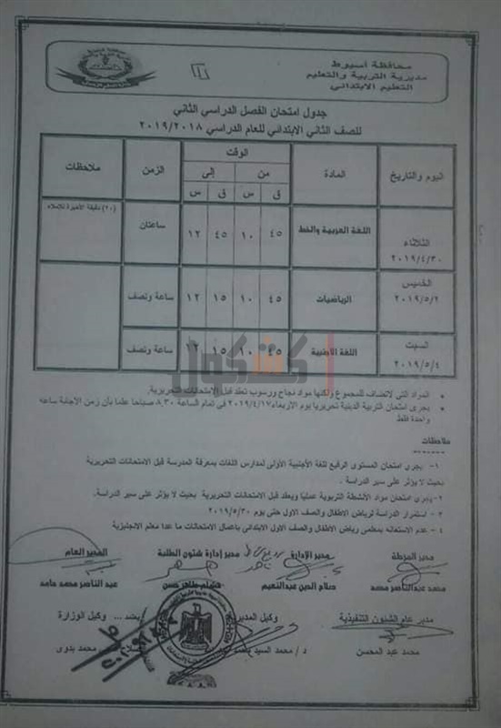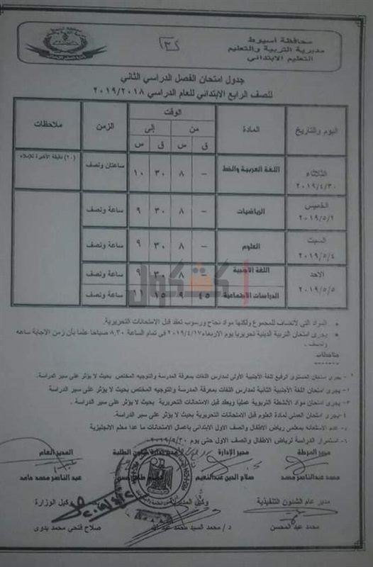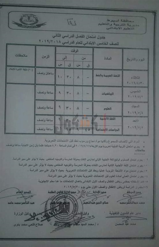 ننشر جدول امتحانات نهاية العام للمرحلة الابتدائية بأسيوط