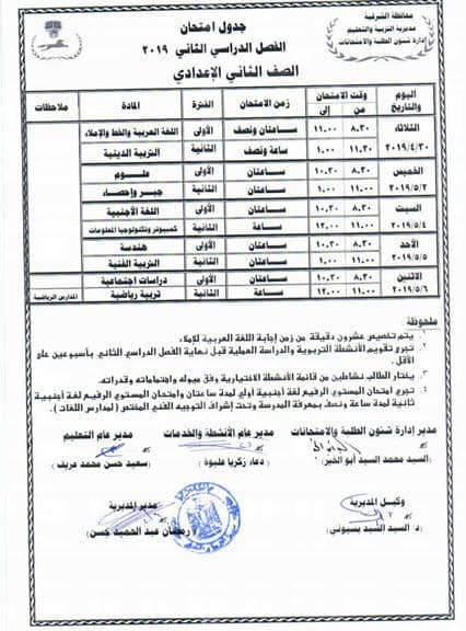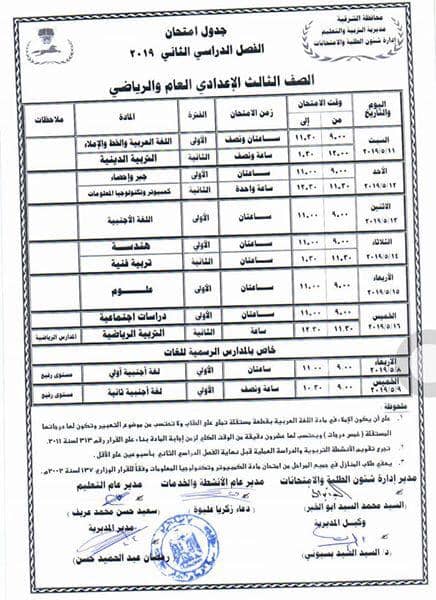 جدول امتحانات نهاية العام للمرحلة الإعدادية بالشرقية