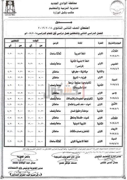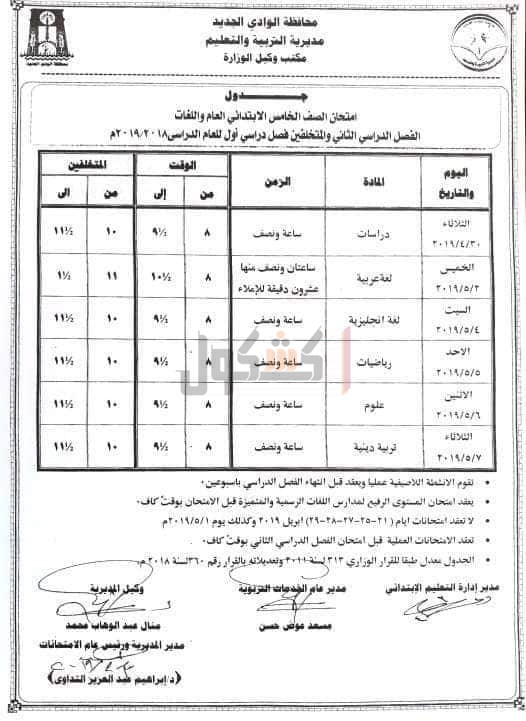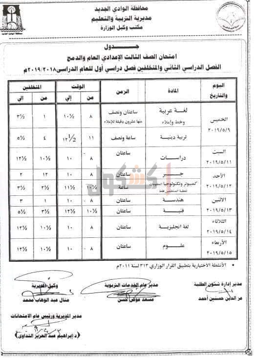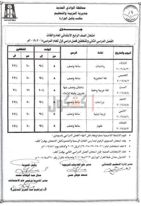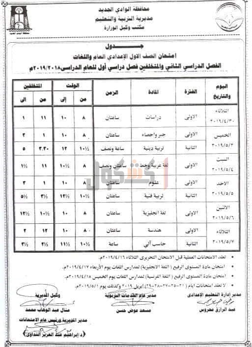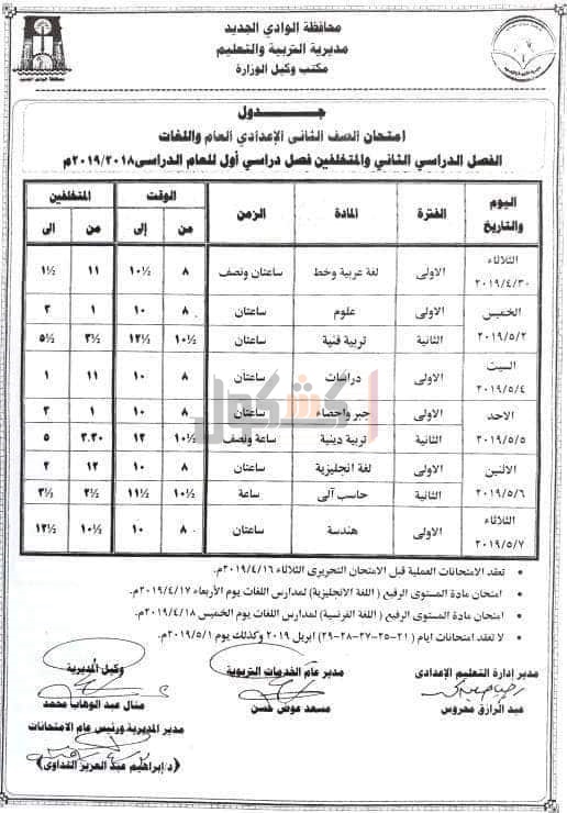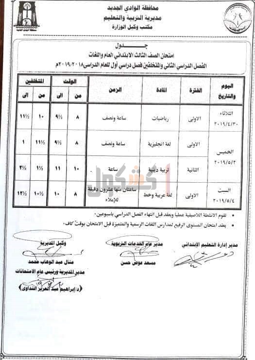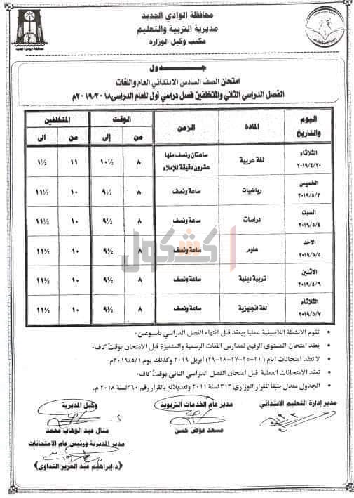 التربية والتعليم بمحافظه الوادي الجديد، جدول امتحانات الفصل الدراسي الثانى، للمراحل