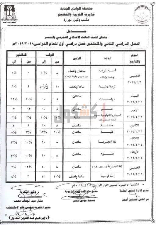 ننشر جدول امتحانات نهاية العام بـ"تعليم الوادي"