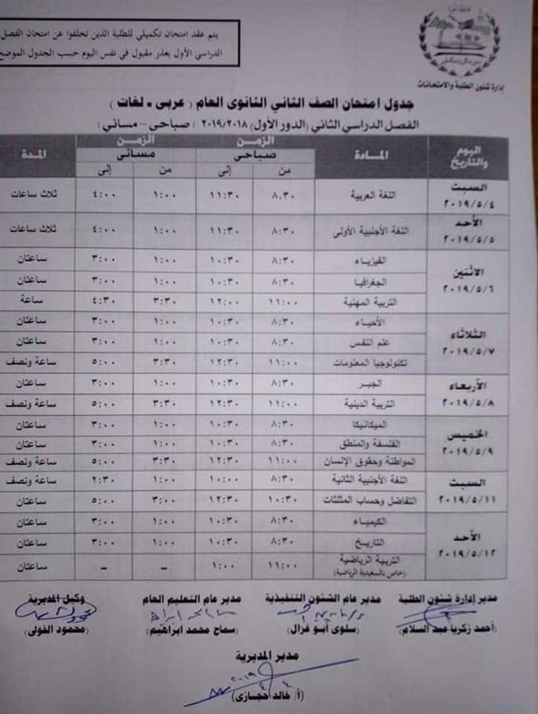 ننشر جدول امتحانات الصف الثاني الثانوي بالجيزة
