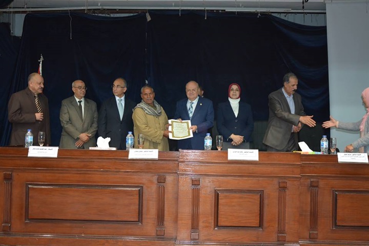 عام الجامعة، بتوزيع شهادات التقدير علي المكرمين من كليات "الزراعة والطب البيطري