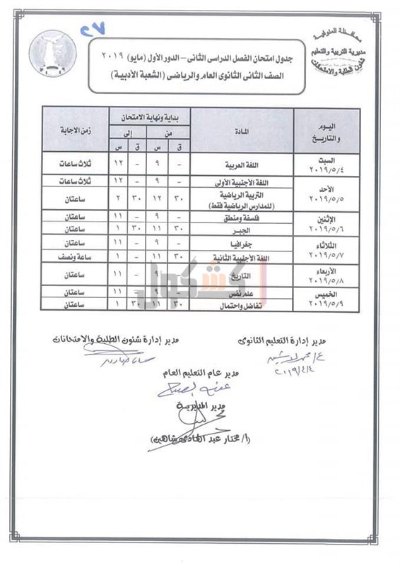 ننشر جدول امتحانات نهاية العام للثاني الثانوي بالمنوفية