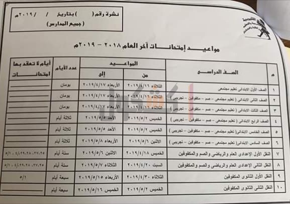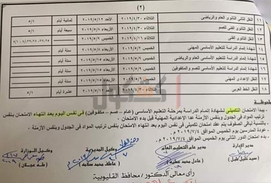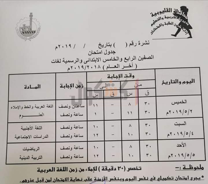 ننشر جدول امتحانات الفصل الدراسي الثاني بالقليوبية