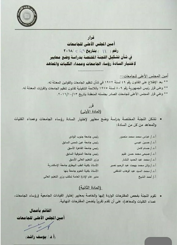 قرار المجلس الأعلى للجامعات، أن اللجنة ستقوم بفحص المقترحات الورادة غليها والخاصة