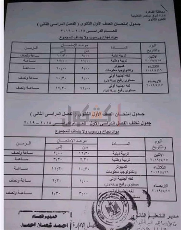 ننشر جدول امتحانات المواد غير المضافة للأول الثانوي بالقاهرة