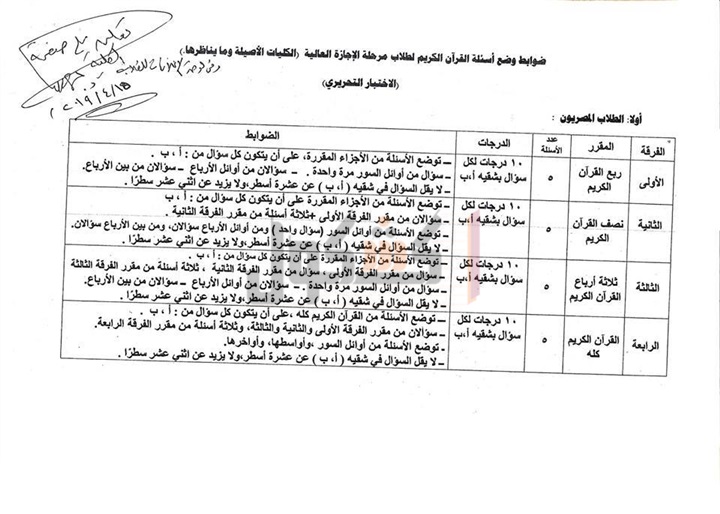 إذا كان يؤدى الطلاب الامتحان فى ربع القرآن أو 5 أجزاء،