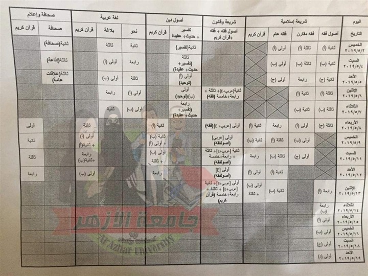 ننشر جدول امتحانات الشفوي لكلية الدراسات الإسلامية للبنات بالقاهرة