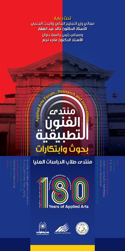 نظمت كلية الفنون التطبيقية جامعة حلوان تحت رعاية الأستاذ الدكتور ماجد نجم رئيس الجامعة منتدى طلاب الدراسات العليا والبحوث والذي أقيم تحت عنوان "الفنون التطبيقية .. بحوث وابتكارات".