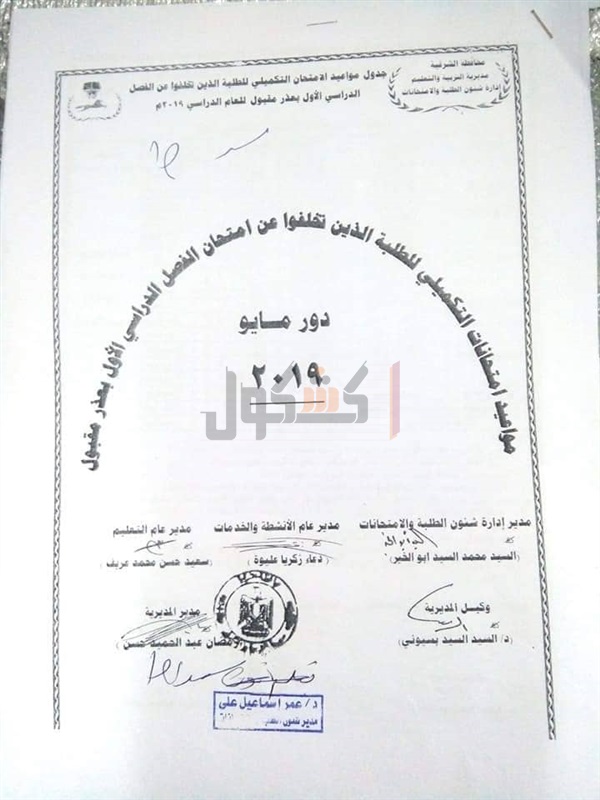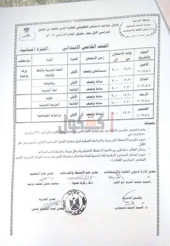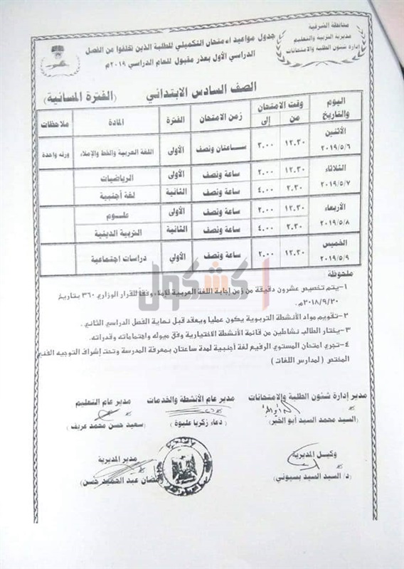 حصل "كشكول" على جدول المتخلفين بعذر مقبول عن امتحانات الفصل الدراسي الأول للعام 2018 / 2019.