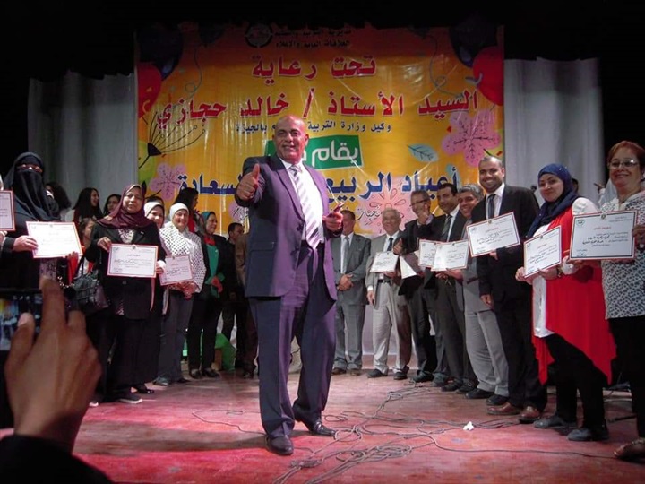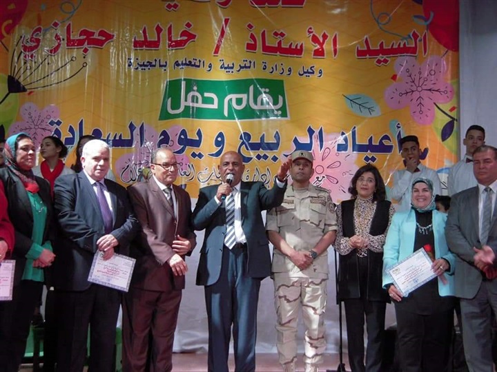 نظمت مديرية التربية والتعليم بالجيزة، اليوم الخميس، حفل أعياد الربيع ويوم السعادة، بمسرح المديرية بمدرسة السعيدية، بقيادة خالد حجازي وكيل الوزارة - مدير مديرية التربية والتعليم، وبحضور العقيد محمد عبد الهادي المستشار العسكري للمحافظه، والدكتور أشرف زكى نقيب الممثلين ورئيس أكاديمية الفنون والنائبة د. مي بطران والمستشار بدوي علام رئيس مجلس الامناء والآباء والدكتور عادل عبد المنعم مستشار التعليم بالمديرية.