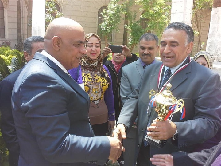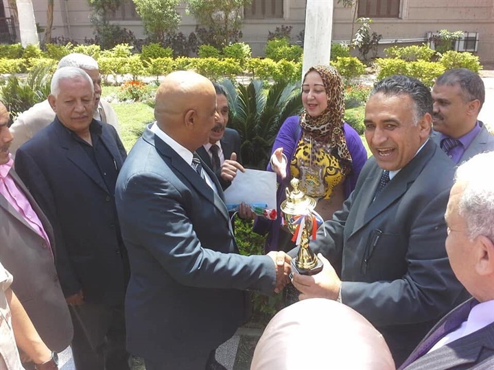 كرم خالد حجازى مدير مديرية التربية والتعليم بالجيزة اليوم ، ادارة مدرسة أم الثانوية بنات التابعة لادارة العمرانية ،عقب حصولها أمس علي كأس المركز الأول في مسابقة أحمل حديقة مدرسية التي أقامتها وزارة التربية والتعليم للعام الدراسي ٢٠١٨/٢٠١٩ .