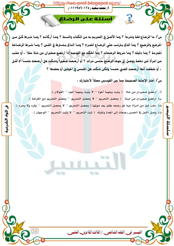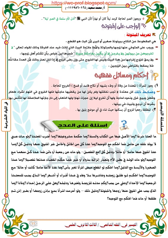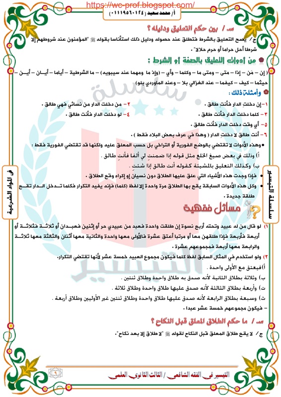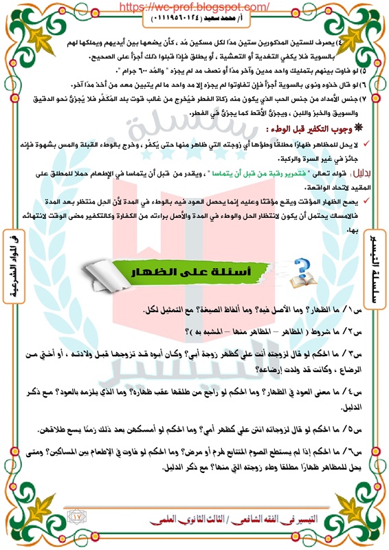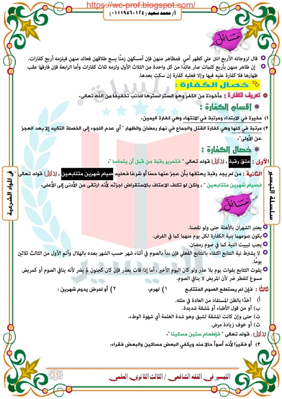 مراجعة شاملة لمادة الفقه الشافعى لطلاب الثانوية الأزهرية 2019