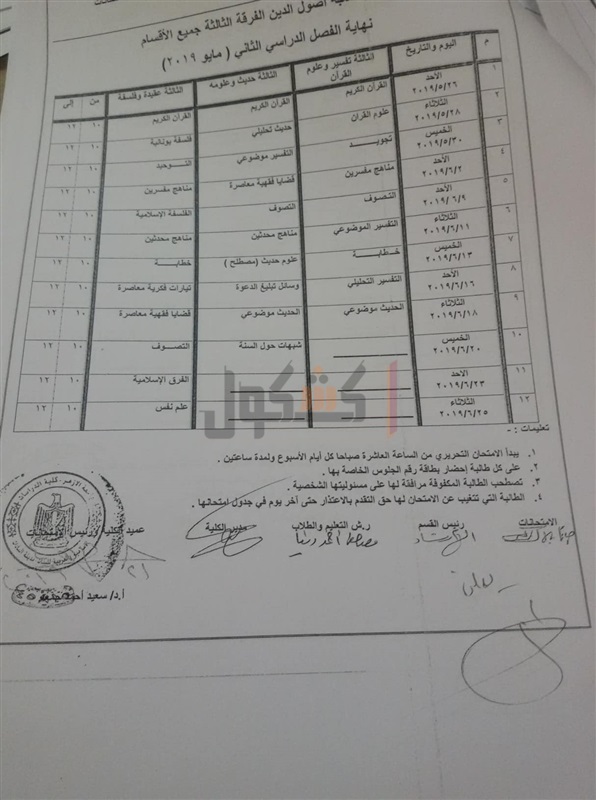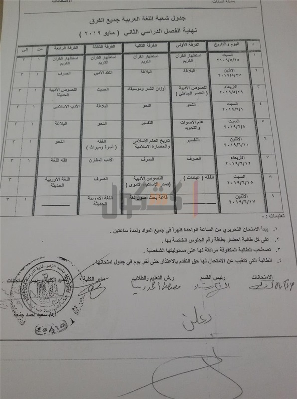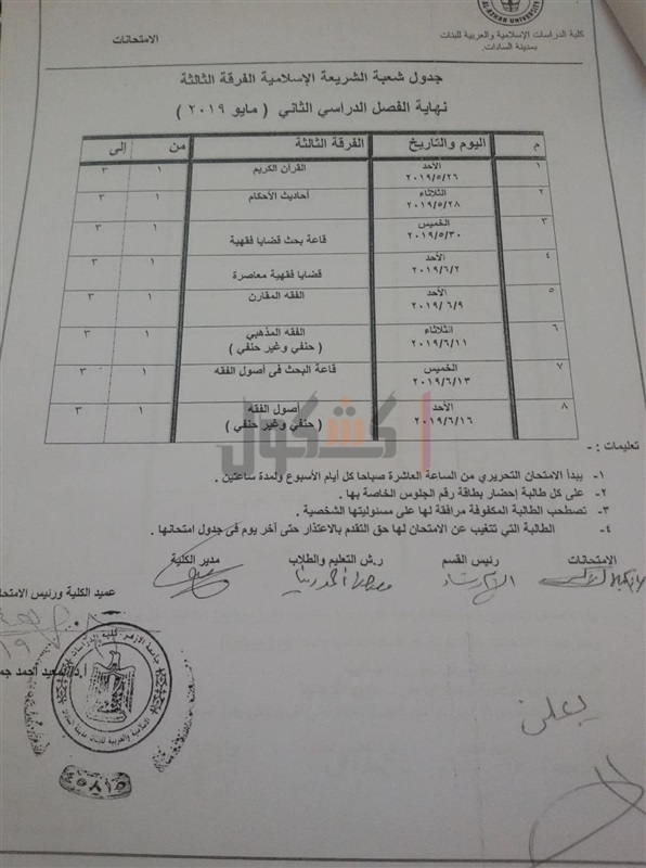 حصل "كشكول" على جداول امتحانات الفصل الدراسي الثاني، لكلية الدراسات الإسلامية والعربية للبنات بجامعة الأزهر بالسادات.