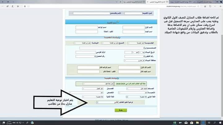 ووجهت التعليم مدراء المدارس بسرعة تسجيل الطلاب .